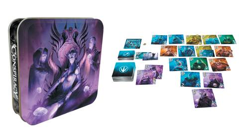 Ce jeu s’arrime à l’univers d’Abyss, un jeu de plateau dont nous vous avons déjà parlé. Encore une fois, les illustrations sont magnifiques, et le jeu se présente dans une jolie petite boîte en métal qui est facile à trimballer partout.